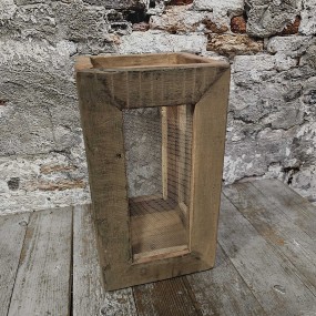 Taupe old wood lantaarn + gaas 20x20xH35cm (57)